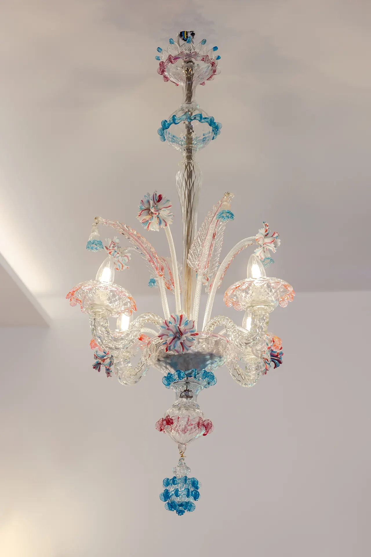 The interiors achieve a refined balance of tradition and functionality, blending original early 1900s furnishing, such as the Murano glass chandeliers, with contemporary elements designed for modern comfort.
